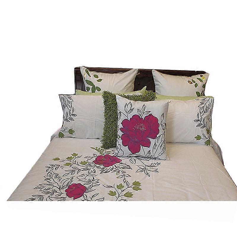 This Stunning Inspired Monique Embroidery Quilt Cover Set Will Make A Huge Difference In The Look And Feel Of Your Room. The Design Features An Appliqued And Embroidered Floral Pattern In In Hot Pink Charcoal Grey And Green With A Crisp White Background Which Is Made Of Quality Poly Cotton. Please See Close Up Picture Taken From The Actual Doona Cover. Winning Buyer Will Be Very Pleased. Includes Co-Ordinating Pillowcases.