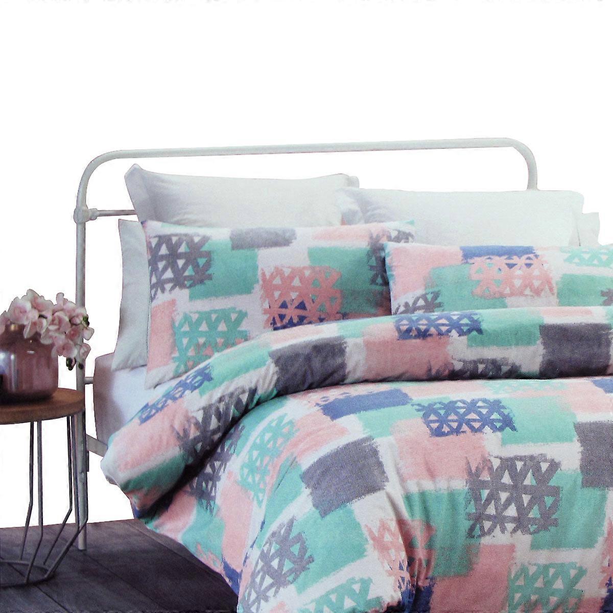 Give Your Bedroom A Touch Of Pastel Hues With This Beautiful Gouache Niro Easy Care Quilt Cover Set By Belmondo. The Quilt Cover Features Geometric Design Printed In Soft Neutral Hues Of Off White Green Pink Blue And Grey For An Inviting Bedroom Look. It Is Made From Quality And Soft Touch Polyester Cotton Fabric With Easy Care Properties You Can Enjoy For Years To Come.