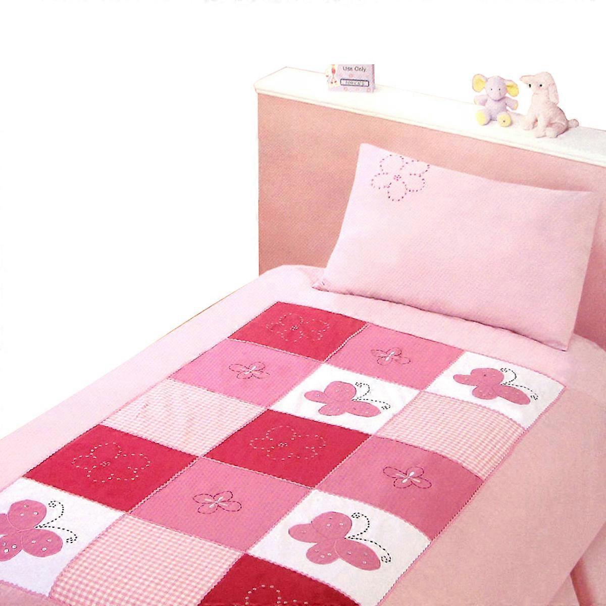 This Adorable Bindi Butterfly Embroidered Quilt Cover Set Single Will Add Comfort And Fun Into Your Kid's Bedroom. It Features An Applique Butterfly Design Inside A Square Pattern In Lovely Colour Hues Of Pink Hot Pink Brown And White For A Super Fun And Creative Bedroom Look. It Is Made From Soft Touch And Quality Polyester Cotton Blend Fabric With Easy Care Properties And Softness You Can Enjoy All Night Long.