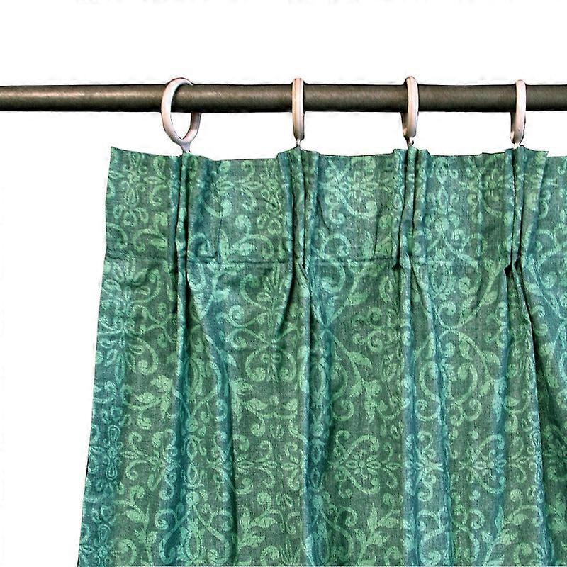 Pair Of Acrylic Coated Damask Green Tape Edge Curtains Curtains & Drapes