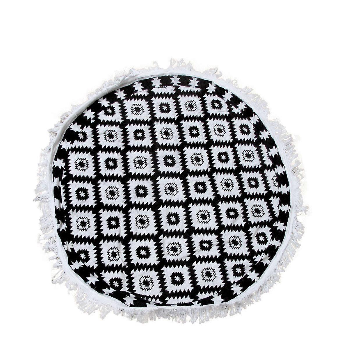 Spend You Summer Days As Gorgeous As This Aztec 100% Cotton Round Beach Towel 150Cm Diameter + 5Cm Fringe. It Features A Stunning Aztec Pattern Design And Accented With A Fringe In Clean Colour Tones Of Black White And Grey For A Fun Summer Time. Perfect For The Beach Or pool Use. It Is Made From Soft And Comfortable 100% Cotton Fabric In Approx 450Gsm With Easy Care Properties And Long Lasting Durability.