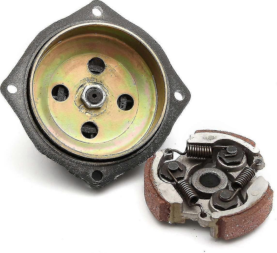 Can be used to replace faulty or worn out clutches for your beloved bikes Suitable for 47cc 49cc pocket bike, ATV, Dirt Bike, mini quad. Easy to install & simple and effective leveling requisite: Material: aluminum and iron Color: as the picture shows The gearbox: 6-tooth Application: the gearbox (clutch housing/housing) and clutch pad for 47cc 49cc pocket bike, ATV, Dirt Bike, mini quad