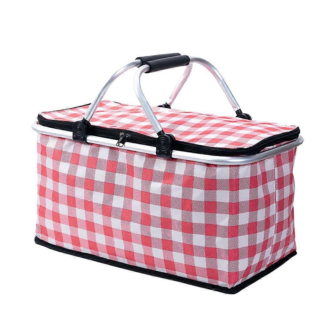Collapsible Outdoor Camping Insulated Picnic Basket Ice Pack(Red Grid) Picnic Baskets & Backpacks