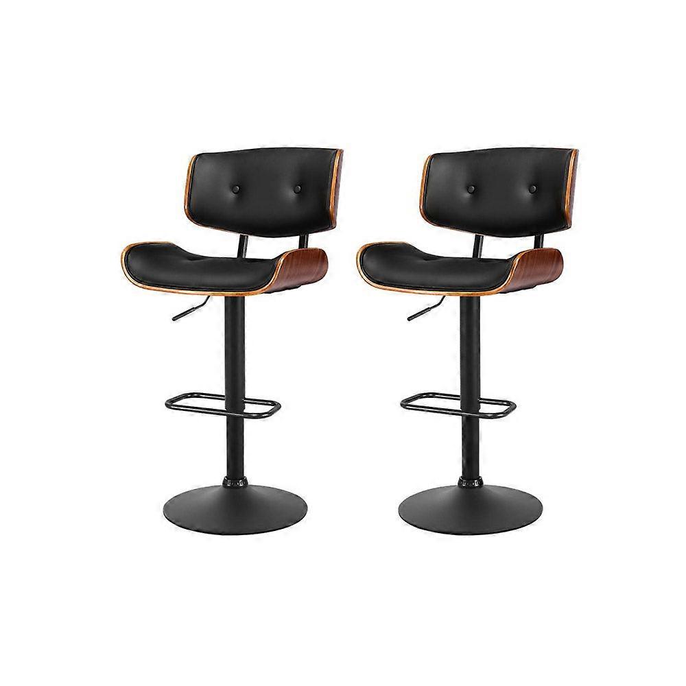 Artiss 2X Bar Stools Gas Lift Leather All Black Benches Bar Stools