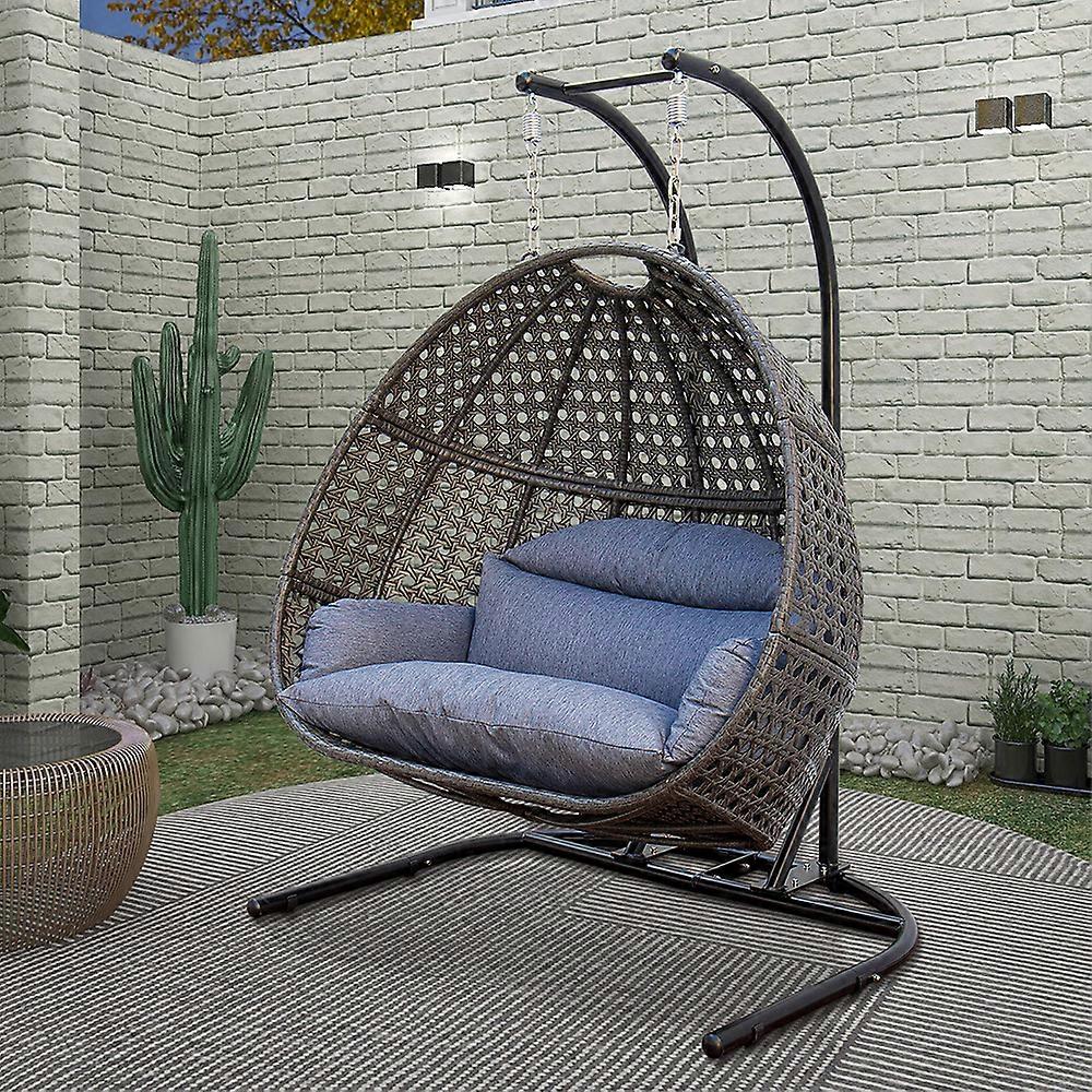 Highlights:1.l The basket frame can be disassembled and the cushion can be disassembled and washedDetails:Product Featuresl The basket frame can be disassembled and the cushion can be disassembled and washedl Choose high-quality PE cane; with anti-corrosion; waterproof; moth-proofing; non-toxic; no odor;l Not easy to break;l Able to withstand the wind; rain and sun damage.l 0.1 inch thickened wall tube; Water - proof; anti - corrosion; strong and durablel The basket frame can be disassembled and the cushion can be disassembled and washedProduct Descriptionl Enjoy lazy leisure time of childhood carefree and comfortablel Application: balcony; courtyard; cafe; park and other outdoor placesl Due to different display settings; the product color may be different; please refer to the actual product; thanks for your kindly understanding!Product Detailsl Material: 5-inch thick seat cushion and headrest pillow; high-quality PE cane; 0.1 inch thickened wall tube; Iron; Stainless steel; PP cotton + soft spongel Product size: Main basket: 58 inches(W) x 27.5 inches (D) x 48.8 inches (H) Bracket:58(W) x 47(D)x 77 (H)l Net weight:154lbsl Packing size: 62*31*21 inchesl Gross weight:159lbsl Load bearing:551lbsl Color: Black iron frame +Charcoal black +ivy blue Gray seat cushionl *EASY TO ASSEMBLE: We have a easy-to-understand installation manual in the package; Everything you need is in the box.l No. of Package(s): 1