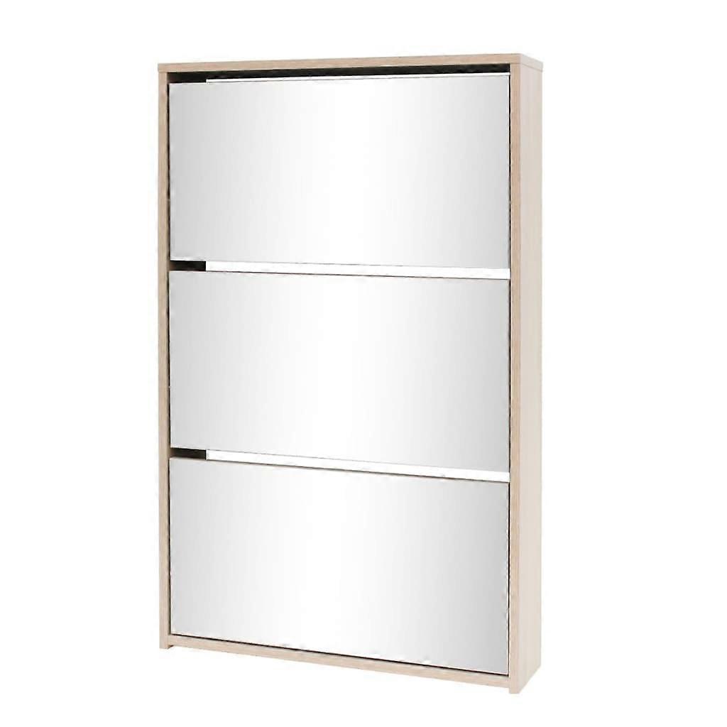 Shoe Cabinet 3 Layer Mirror Oak 63X17x102.5 Cm Shoe Cabinets