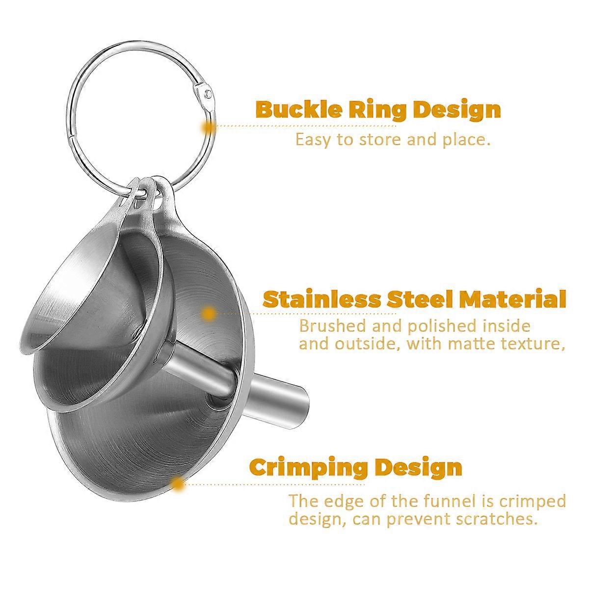 Stainless Steel Funnel Set for Kitchen Use Highly with Narrow Stem and Hanging Ring 3PCS