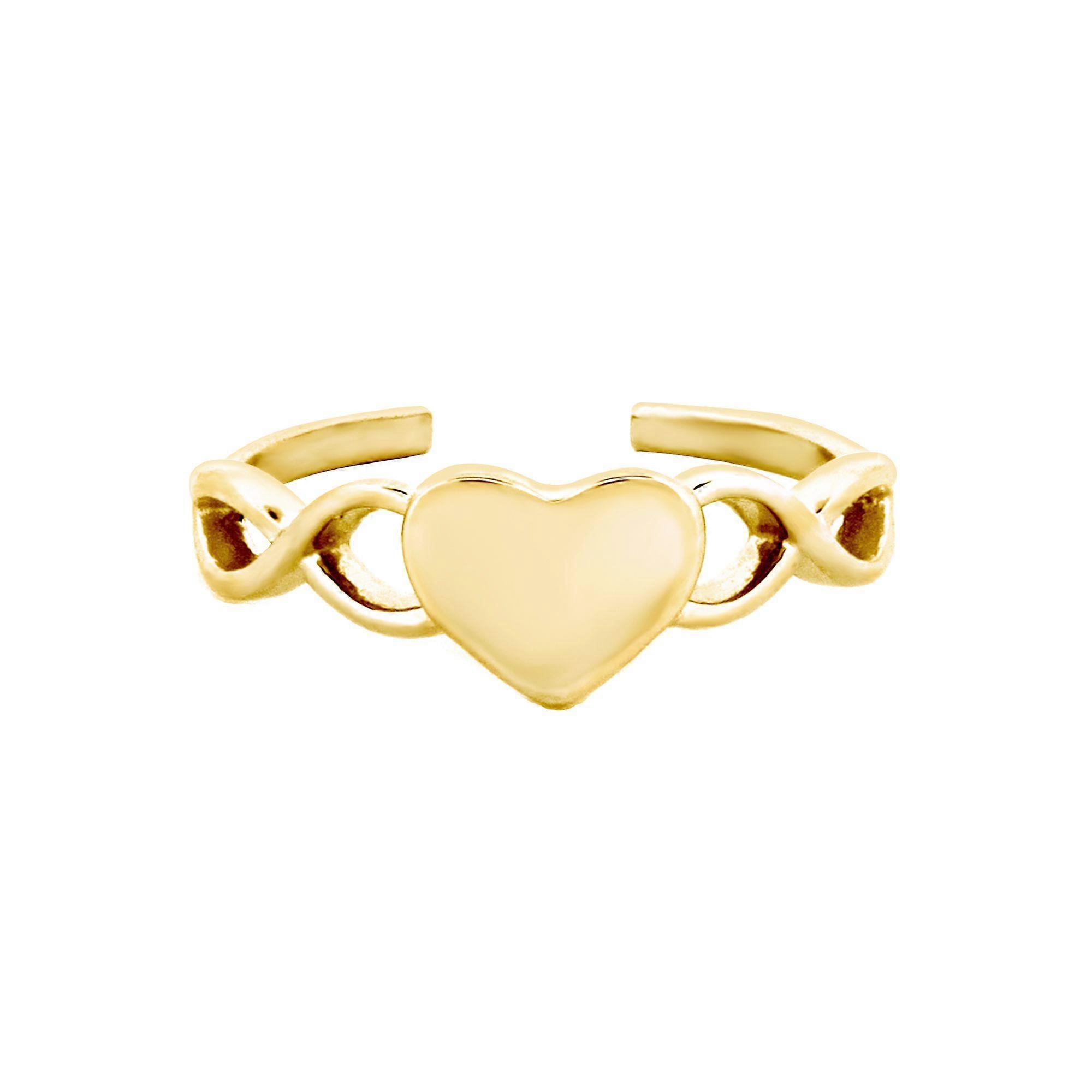 Jewelco London Ladies Solid 9ct Yellow Gold Infinity Symbol Love Heart Open Toe Ring