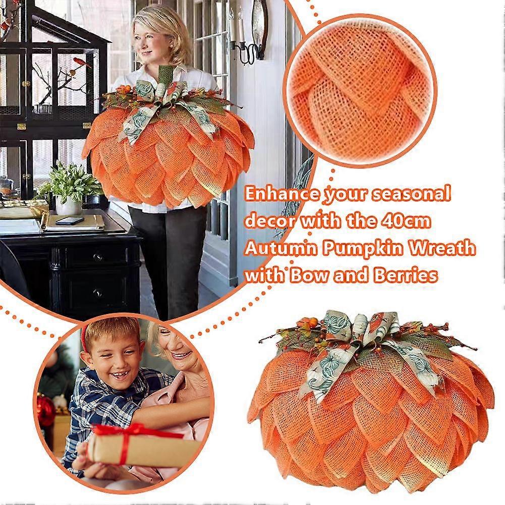 Festival Wreath Autumn Pumpkin Wreath with Bows Berries Pumpkin Garland