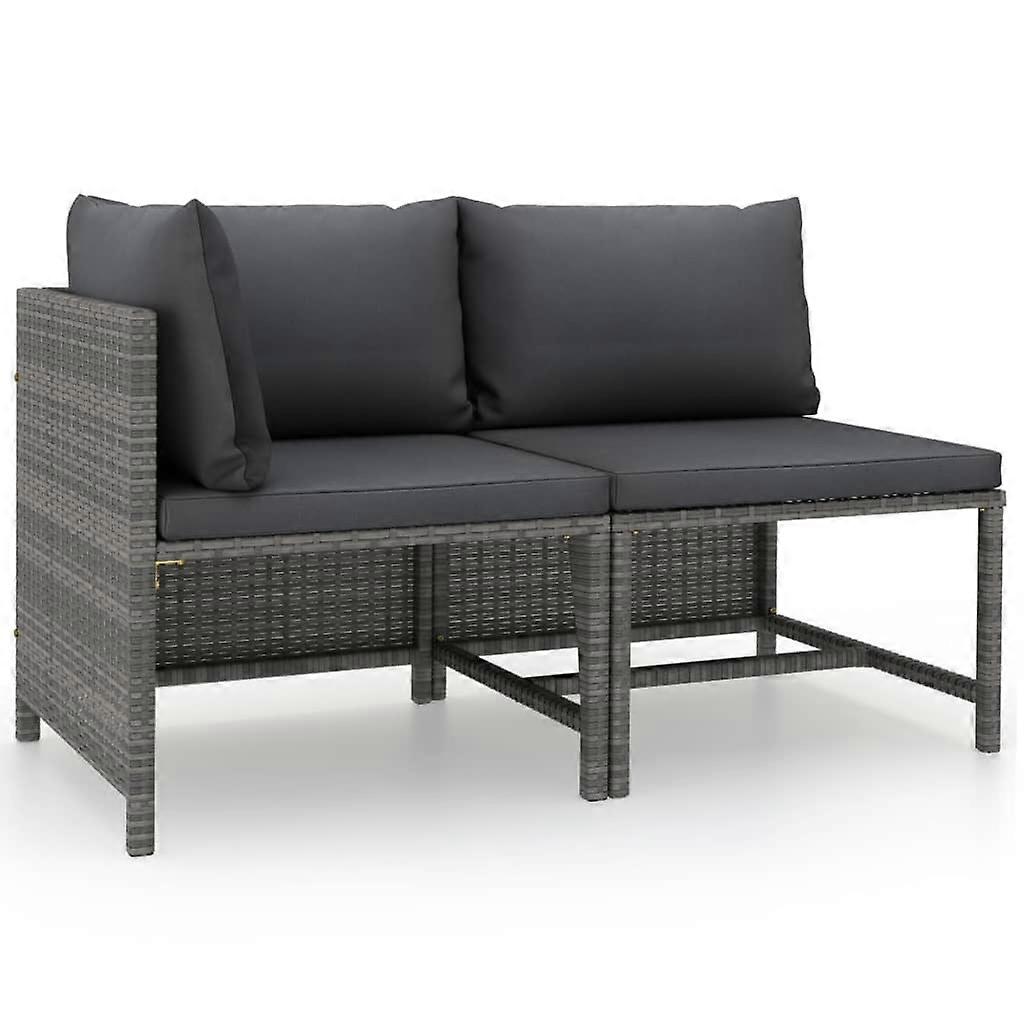 2 Piece Garden Sofa Set With Cushions Grey Poly Rattan Patio Furniture Sets