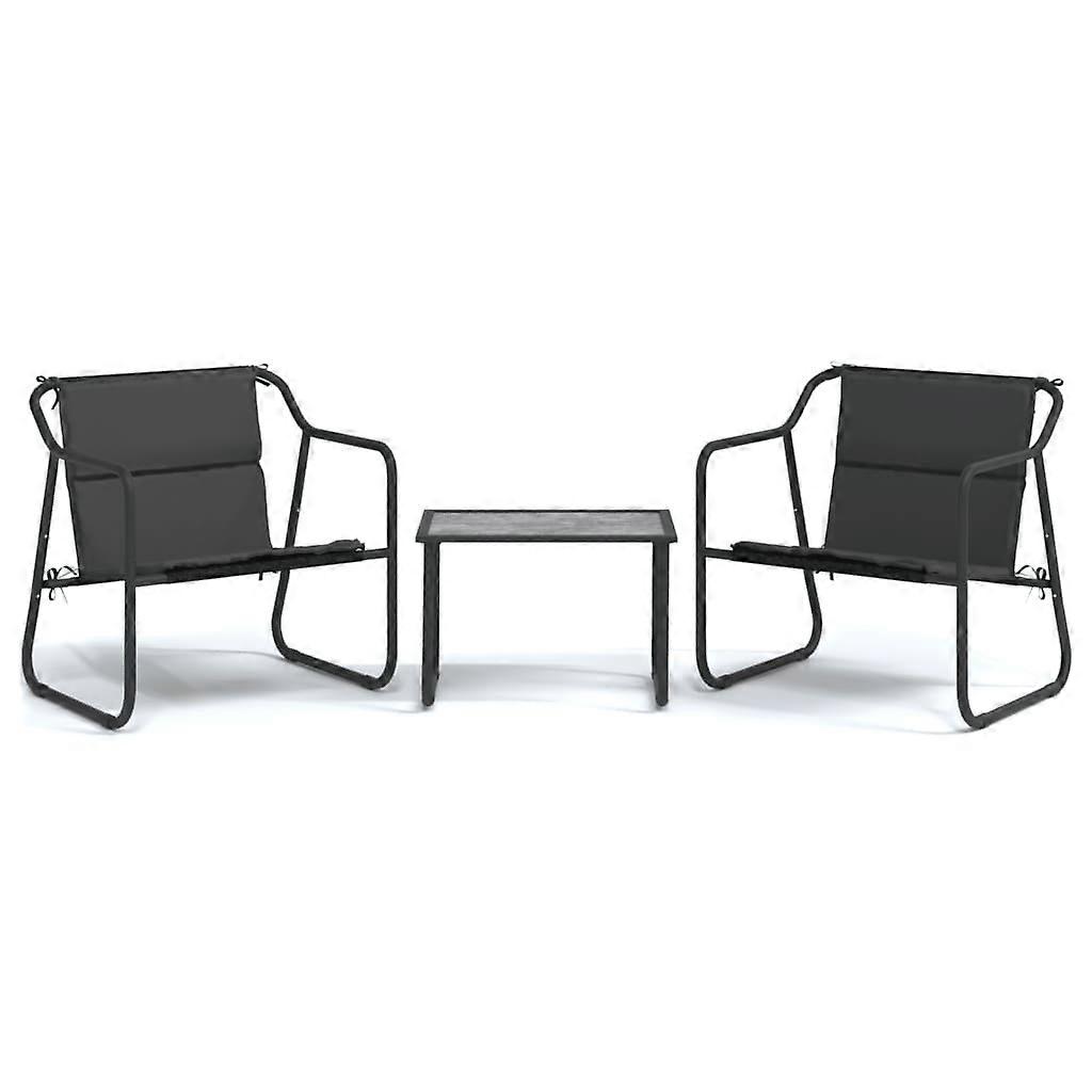 HOD HEALTH AND HOME Australia has been operating online and instore for 8 years. All products come with a 1 year warranty, fast shipping and special offers added to our site daily.. This Trendy Garden Lounge Set Featuring An Elegant And Contemporary Design Is A Great Choice For Relaxing In Your Garden. Durable Material: Textilene Fabric Allows Air To Flow Freely Through It While Being Resistant To Uv Rays. This Makes Textilene Ideal For Hot Weather. As A Durable And Strong Material It Is Highly Resistant To Tears Punctures And Mildew. Sturdy And Stable Frame: The Steel Frames Make The Lounge Set Sturdy And Stable For Daily Outdoor Use. Comfortable Seat Experience: The Chair Featuring A Sloping Back And Deep Seat Is Perfect For Releasing All Your Pressure And Fatigue. Additionally The Thickly Padded Cushion Provides Comfort For Your Sitting Time. Practical Table: The Sturdy Table Is Perfect For Placing Meals Drinks And Other Decorative Items. Note: To Make Sure Your Outdoor Furniture Stays Beautiful We Recommend Protecting It With A Waterproof Cover. Table: Colour: Anthracite Material: Powder-Coated Steel Dpc Dimensions: 60 X 40 X 40 Cm (W X D X H) Chair: Colour: Anthracite Material: Powder-Coated Steel Textilene Dimensions: 59 X 70 X 74 Cm (W X D X H) Seat Depth: 53 Cm Seat Height From The Ground: 40 Cm Armrest Height From The Ground: 62 Cm Back Height From The Seat: 46 Cm Maximum Load Capacity: 110 Kg Cushion: Colour: Dark Grey Material: Fabric (100% Polyester) Filling Material: Foam Dimensions: 94 X 44 X 3.5 Cm (L X W