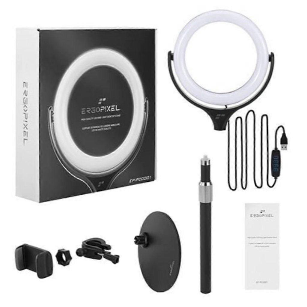 Ergopixel's Desktop Tripod Stand With Led Ring Light Has 3 Light Settings For You To Enjoy. For Each Setting There Are 10 Levels Of Lighting So You Can Find The Right Glow For You. The Tripod Is Equipped With A Durable Phone Holder To Make Live Streaming Video Recording And Indoor Lighting A Breeze. Designed For Professional Pc And Mobile Streaming Enjoy Optimal Illumination That Brings A Studio-Like Quality To Your Setup With None Of The Fuss.