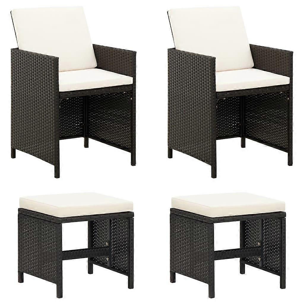 4 Piece Garden Chair And Stool Set Poly Rattan Black Patio Chairs