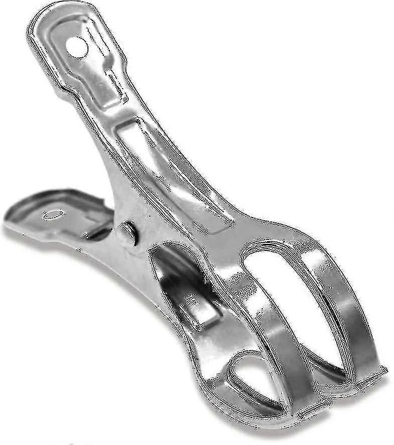 Extra Large Size-- This towel clip is 16.5 X 6cm/6.3 x 2.36inch(L x H) in size, maximum open to around 10cm/4.1inch, bigger than normal clothes peg, that can hang up heavier and chunkier items, designed for large items. Robust and Durable-- Large towel clips made of quality stainless steel, rustproof, polishing and smooth surface, more sturdy and durable than plastic pegs, eco-friendly and recyclable. Strong Gripping-- Large metal clips with strong jaw and springs design ensure strong holding power, anti-slip strips on the contact surface of clip mouth to increase friction resistance to keep your towel and clothing etc from blowing away in a windy day. Exquisite Design-- Stainless steel towel pegs are lightweight, designed with ergonomics handle, no sharp edge, comfortable grip, no hurts for towel or clothing, convenient to use. Applications-- Metal towel pegs with jumbo size have versatile, not only hold a beach towel to the sun lounger in place, also holding a muslin to a pushchair, attaching bed sheet, quilt etc heavy items to a washing line and so on.