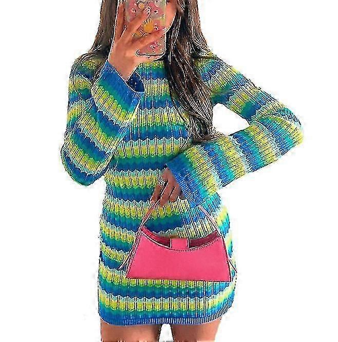 Women's Slim Striped Knit Dress, Tight Fit with Long Sleeves