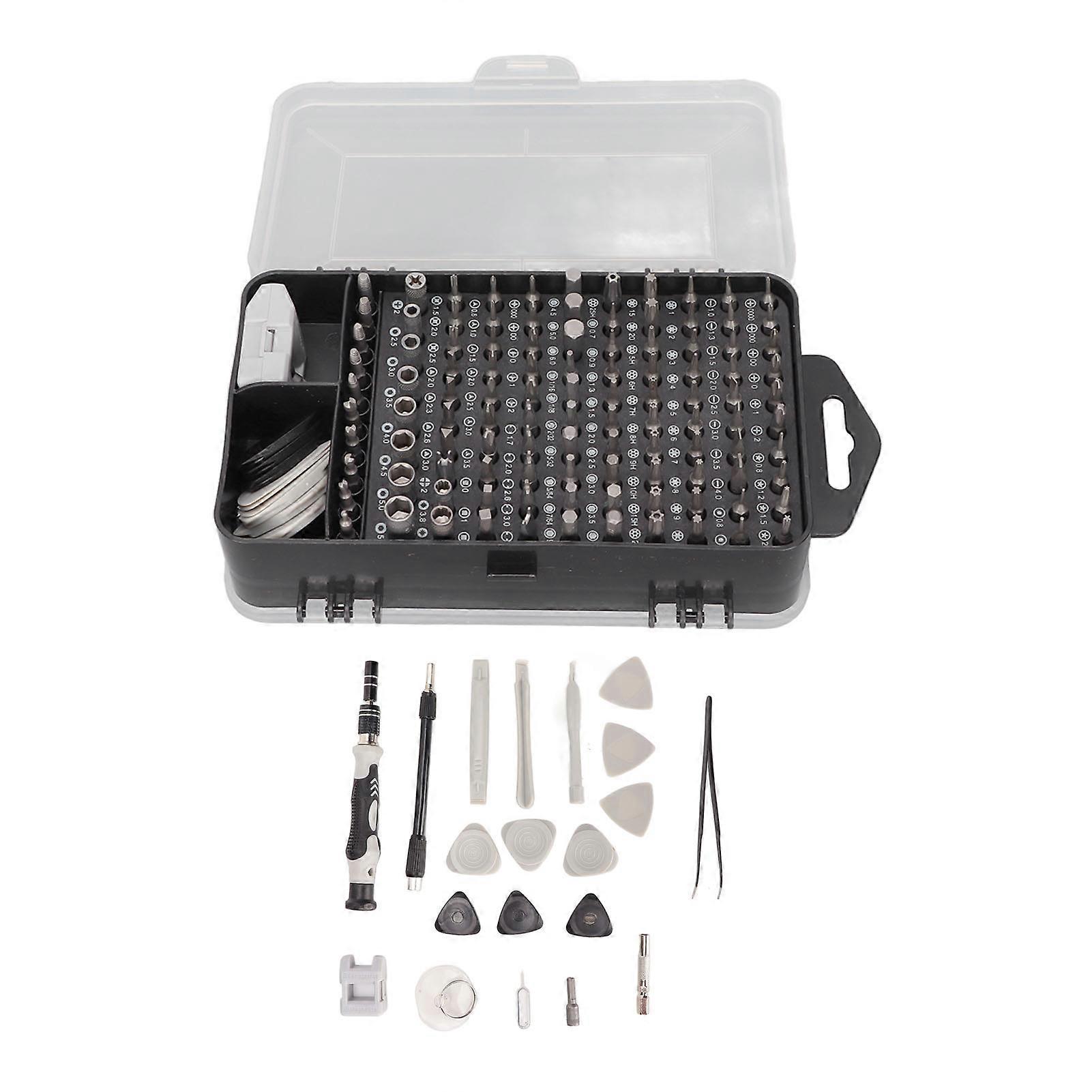 Product Description: 135 in 1 Flexible Adjustable Screwdriver Set for Electronics Repair Practical: This double-sided screwdriver set is designed with complete accessory specifications, making it a versatile and multi-purpose tool. Its practical design includes a universal hose, allowing for easy operation in narrow and hard-to-reach places, enhancing its flexibility and usability. Adjustable Length: The 135 in 1 screwdriver set features an adjustable universal barrel, enabling you to extend the length of the screwdriver. This adjustability not only provides better reach but also increases the torsion force, making it easy to use and operate for various tasks. Magnetic Suction Design: The magnetic suction design at the front end of the extension rod ensures that the batch head remains securely in place during use. This feature enhances convenience and efficiency, as it can also hold multiple small screws without them falling off, streamlining your repair process. Ergonomic Design: The screwdriver set is equipped with a non-slip handle that is ergonomically designed to fit comfortably in your hand. This design reduces the risk of hand fatigue and injury, making it durable and labor-saving, especially suitable for long-term use. Wide Range of Applications: Perfect for a variety of maintenance tasks, this screwdriver set is ideal for equipment maintenance, automobile maintenance, home appliance maintenance, and emergency repairs. It is suitable for repairing computers, glasses, PCs, laptops, mobile phones, watches, cameras, TVs, and more. This 135 in 1 screwdriver set is an essential toolkit for professionals and DIY enthusiasts alike, offering precision, convenience, and reliability for all your repair needs.