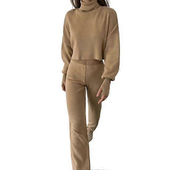 1 Set Women Top Pants Set Loose Long Sleeve Turtleneck Elastic Waist Wide Leg Keep Warm Solid