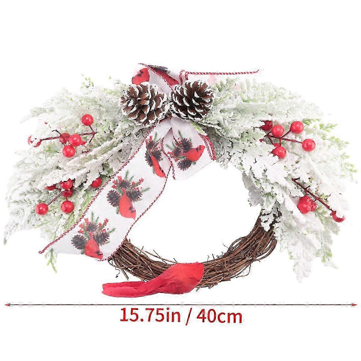 Measures 40x40cm for indoor or covered outdoor use. Each wreath is handcrafted and uniquely and specially made, it would be a great addition to your holiday and winter seasons. This wreath is filled with a variety of lush snow-covered and iced greenery and is accented with snow-covered red berries and pine cones. A cute cardinal bird attracted by a bow ribbon printed with a companion, lands on a wreath. To facilitate transportation, the wreath leaves have been tightened and you can manually expand them to the size after receiving them. size: 40 x 40cm Material: Plastic, natural rattan circle colour: red Package Contents: 1 x Decorations Only the above package content, other products are not included. Note: Light reflection and different displays may cause the color of the item in the picture a little different from the real thing. The measurement allowed error is +/- 1-3cm.