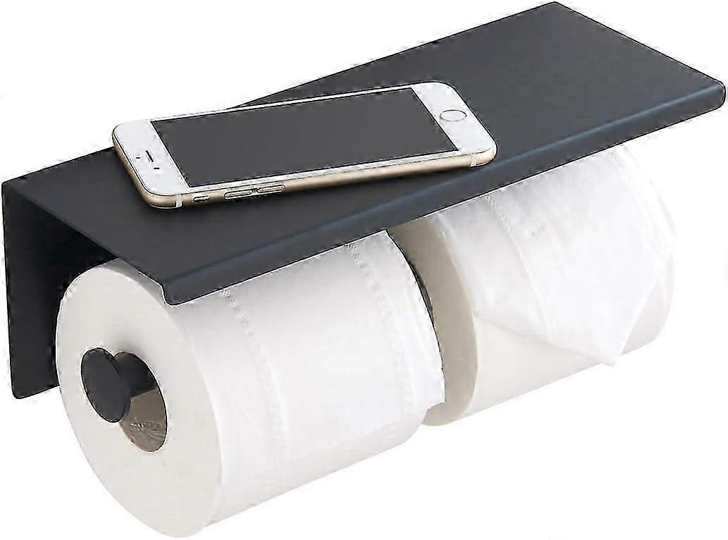 Black Stainless Steel Toilet Roll Holder Double Shelf Wall