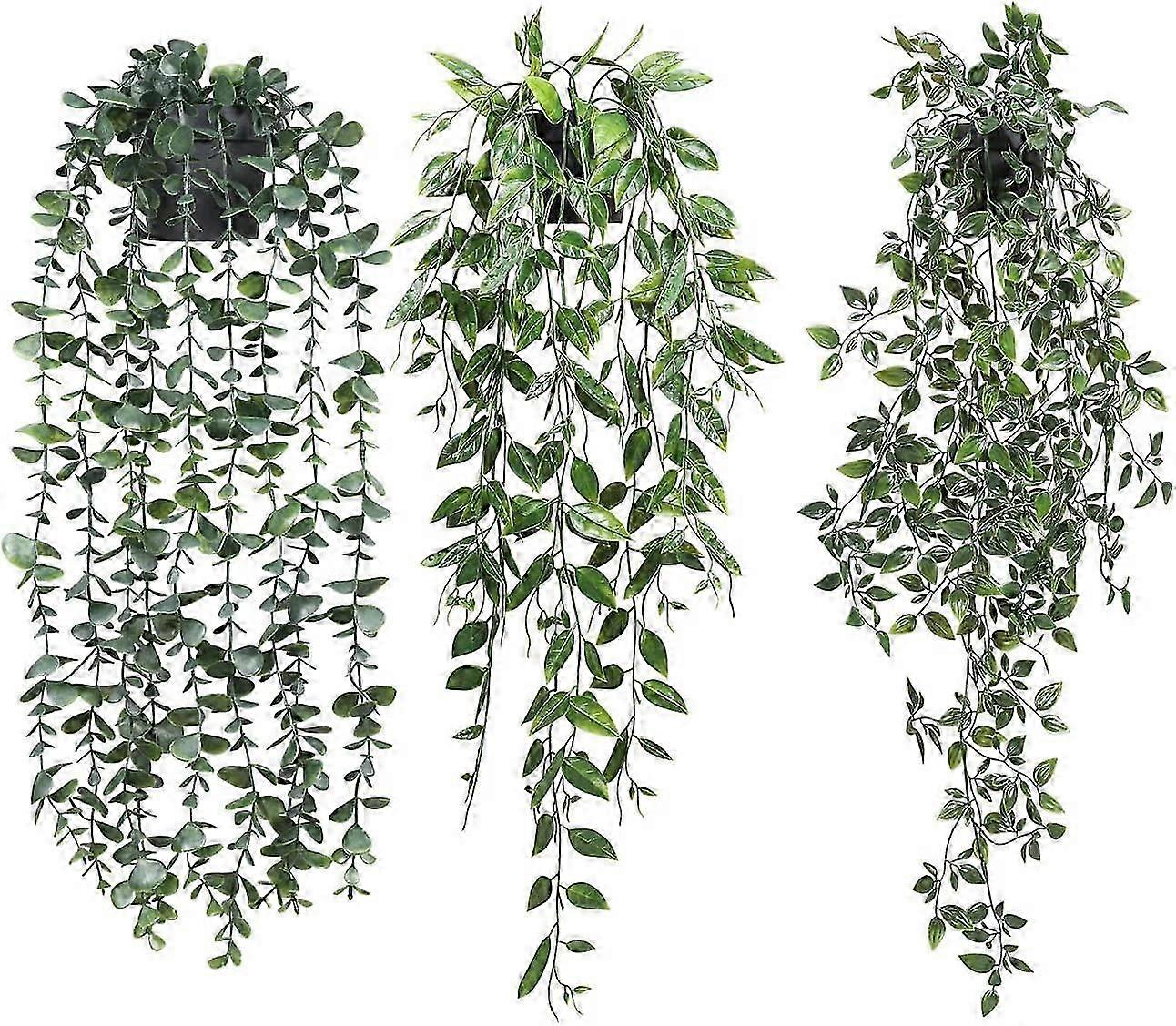 Artificial Hanging Plants 3 Pack, Fake Potted Plants