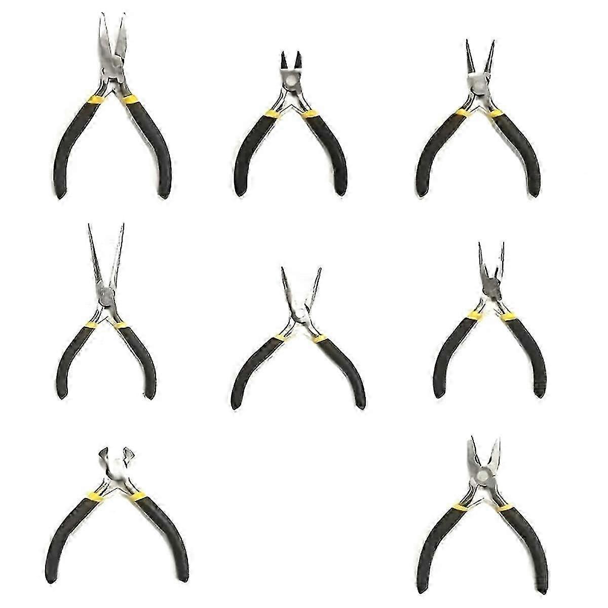 Mini Pliers Set Long Nose with Teeth Flat Jaw Round Diagonal Nose Wire End Cutting Cutter Tools Jewelry Pliers Set (8PCS)