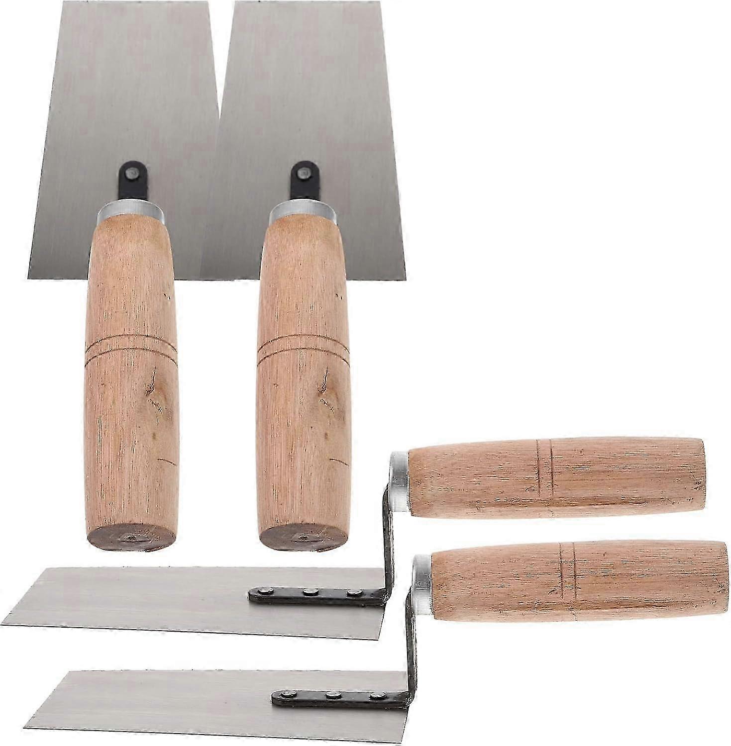 4 pcs Stainless Steel Flat Trowel with Wooden Handle for Concrete Finishing and Tile Work