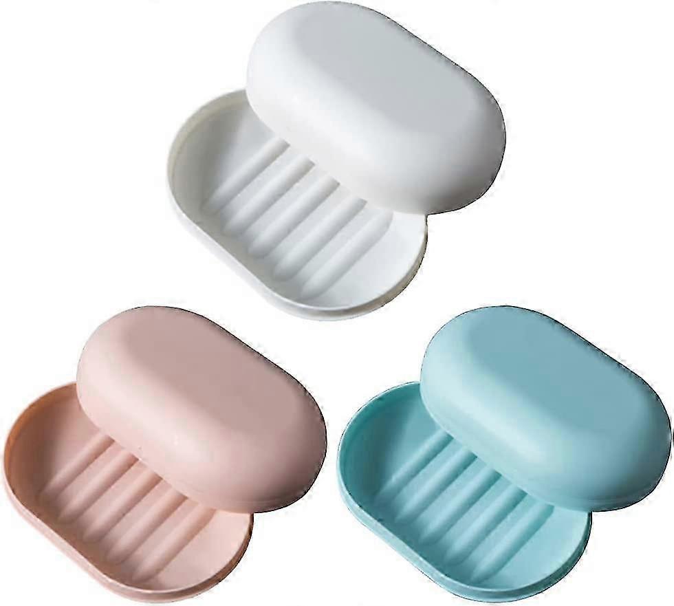 Portable Waterproof Shower Soap Dishes with Cover (3 Pieces, 3 Colors)