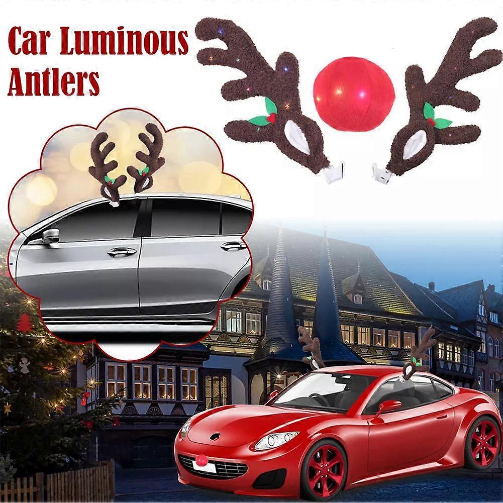 Car Festival Reindeer Antlers & Nose Decoration Set with LED for SUV Van Truck