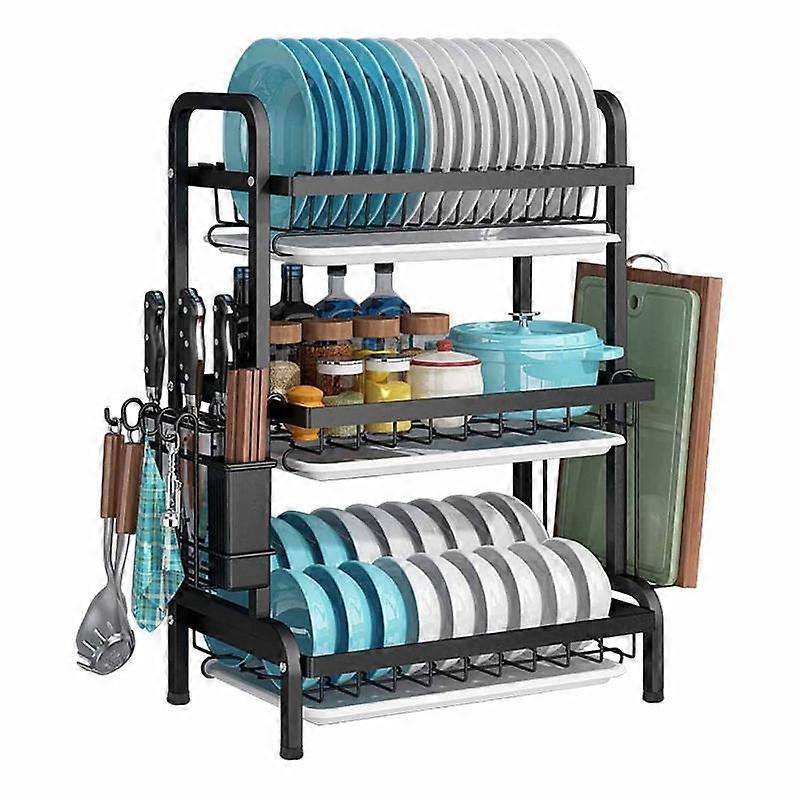 Dish Rack 3 Tier Dryer Drainer Stainless Steel Drying Drip Trays Side Holder Kitchen Storage Save Space Racks & Holders