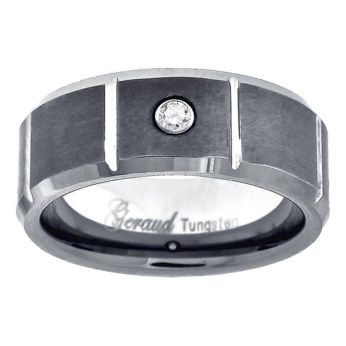 Tungsten Cubic Zirconia Brushed Center Multiple Grooves Beveled Edges Mens Comfort-fit 8mm Wedding Ann - In Tungsten - - Ring Size Options: 10 10.5 11 11.5 12 12.5 13 13.5 14 7 7.5 8 8.5 9 9.5 - [ Potential Enhancement Methods: cubic zirconia ] - Synthetic. Some are covered with a product that makes the stone more durable. - [ Care and Handling: cubic zirconia ] - Clean with warm soapy water and a soft cloth. -