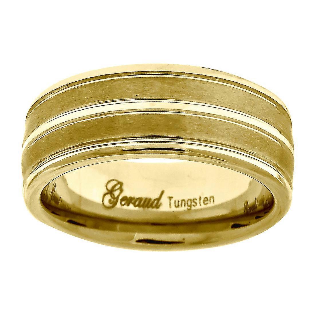 Tungsten Yellow-tone Center Groove Brushed Dome Mens Comfort-fit 8mm Wedding Anniversary Band Wedding Band for Men - Rin