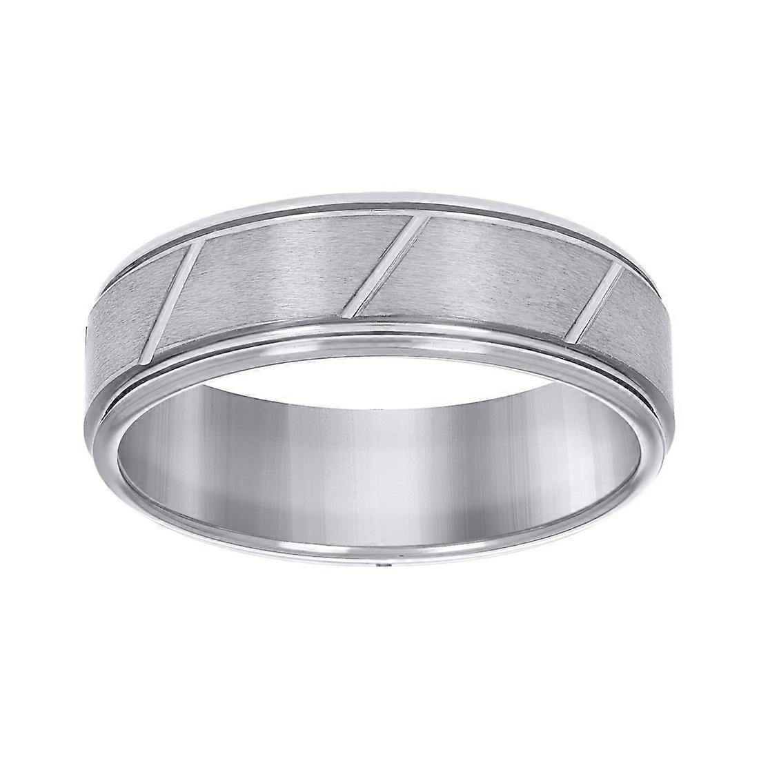 Tungsten Brushed Center Diagonal Grooves Step Edge Mens Comfort-fit 8mm Wedding Anniversar Ring for Men - Ring Size: 7 t