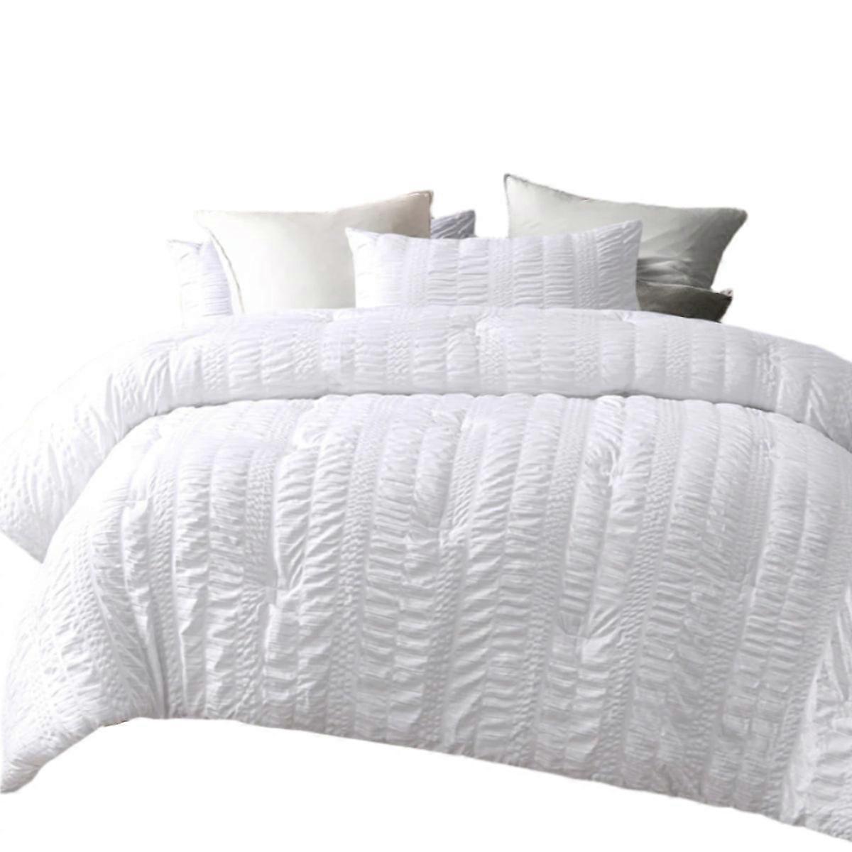 Change The Look Of Your Bedroom By Adding Some Texture With The Accessorize Seersucker White 3 Piece Polyester Comforter Set. This Comforter Set Is Made From 100% Polyester Cover With 100% Polyester Filling Keeping You Comfortable All Night Long. Our Design Features Seersucker Pattern Running Down The Comforter And Pillowcases Adding That Chic Minimalist Style.
