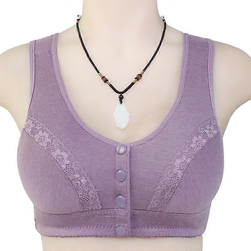 Women's Cotton Vest Style Middle-aged and Elderly Bra Large Size Without Steel Ring Underwear Soft Cotton Lace Front Buckle Underwear