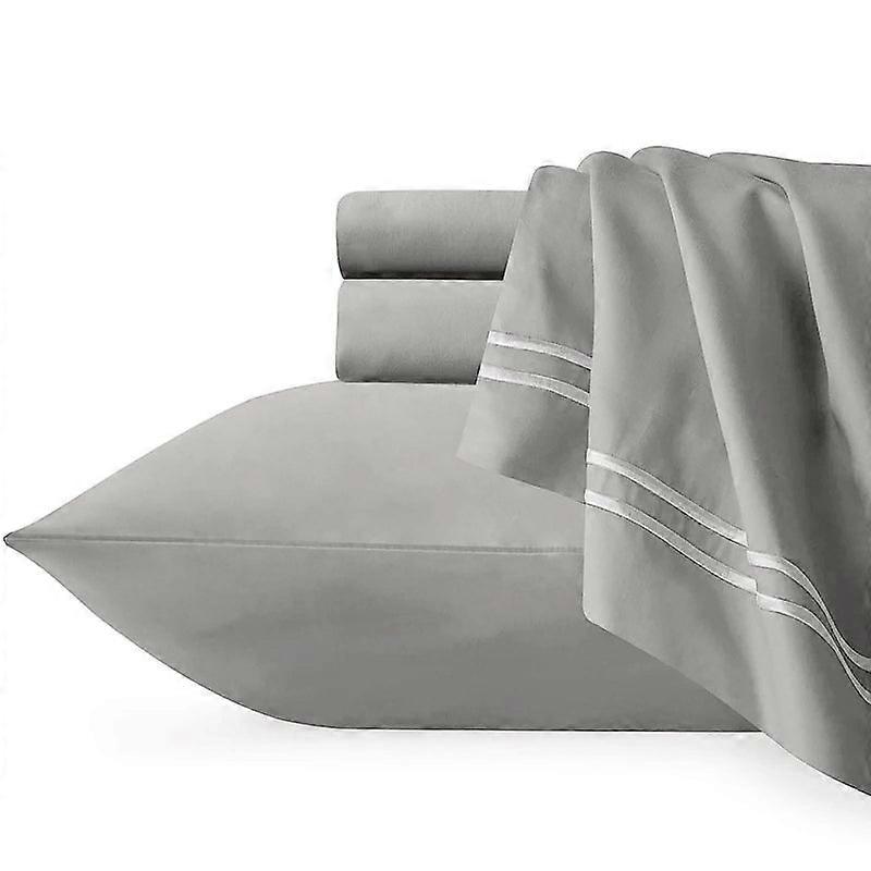 Egyptian Cotton 1000 Thread Count Sheet Set. There's a reason 100% Cotton Sheets remain a timeless favourite. They offer lasting durability keeping you cool in the summer and cozy in the winter. Our ultra-soft Cotton Sheet Set features a classic embroidery detailing on the hem of the flat sheet pillowcases which enhances the modern twist on a linen cupboard essential. This beautiful Sheet Set not only enhances your home but also supports a more sustainable planet. Pillowcases sold separately.