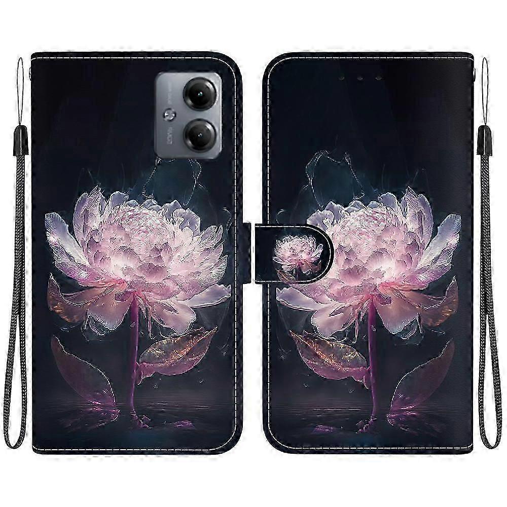 Case For Motorola Moto G14 Closure Butterfly Flower Painted PU Leather Card Slots Wallet