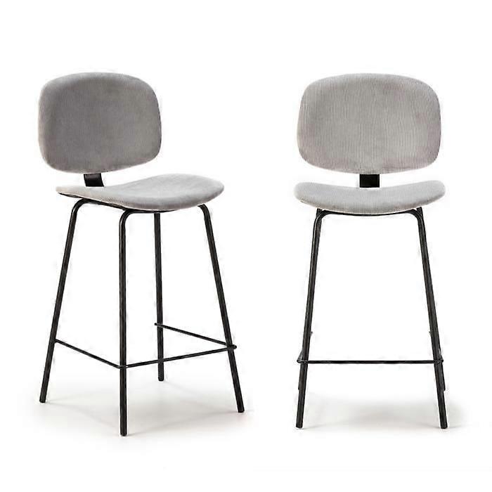 CALICOSY - Set of 2 ribbed velvet stools with black metal legs H65 cm - ARUS - Gray