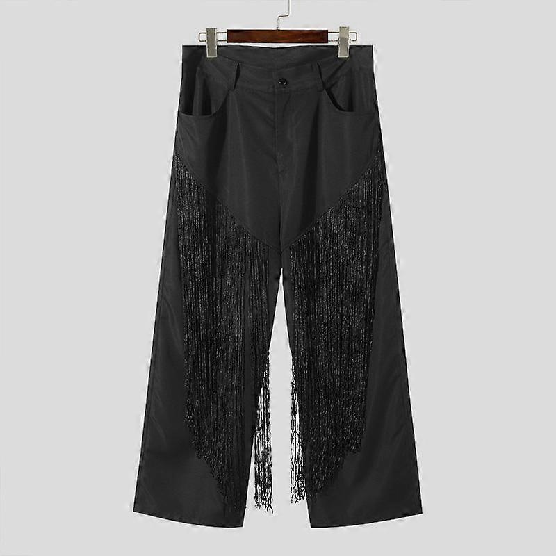 INCERUN Men Zipper Tassel Solid Long Pants Party Wide Leg Trousers