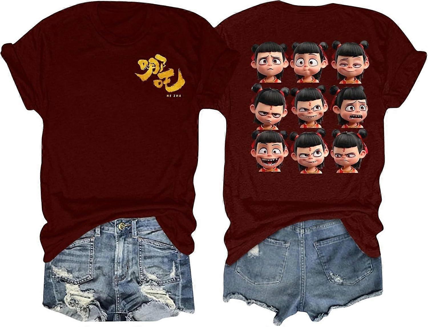 Men's Women's Nezha Printed Tshirt Short Sleeve Round Neck Cartoon Top 3D Anime Hip Hop Streetwear