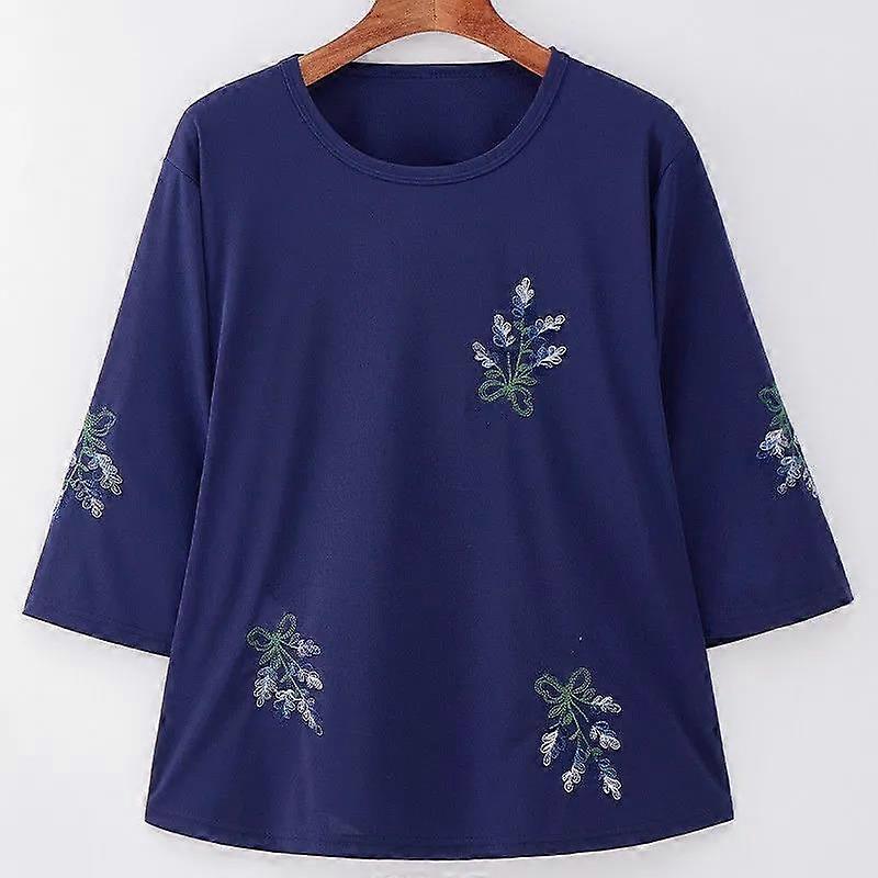 Spring and Summer Embroidered Shirt High Elastic T-shirt Women's Loose Size 7 / 4 Sleeve Casual Summer Wear Blouse