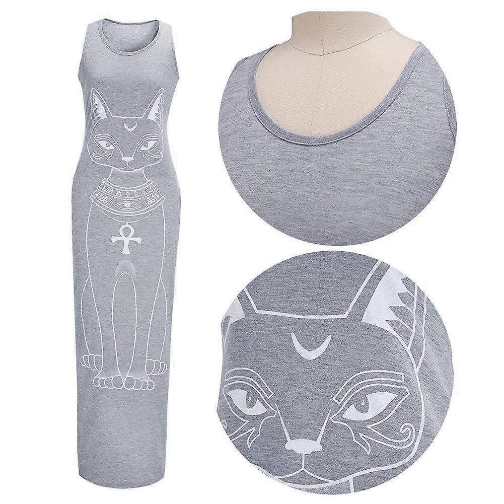 Summer New Little Cat Print Women's Sleeveless Long Casual Dress
