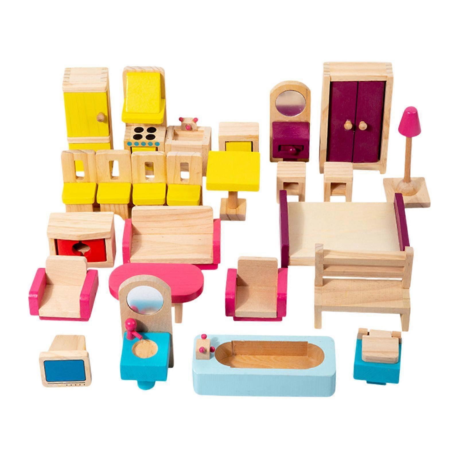 26 Pieces Wooden Dollhouse Furniture Decoration Pretend Play Furniture