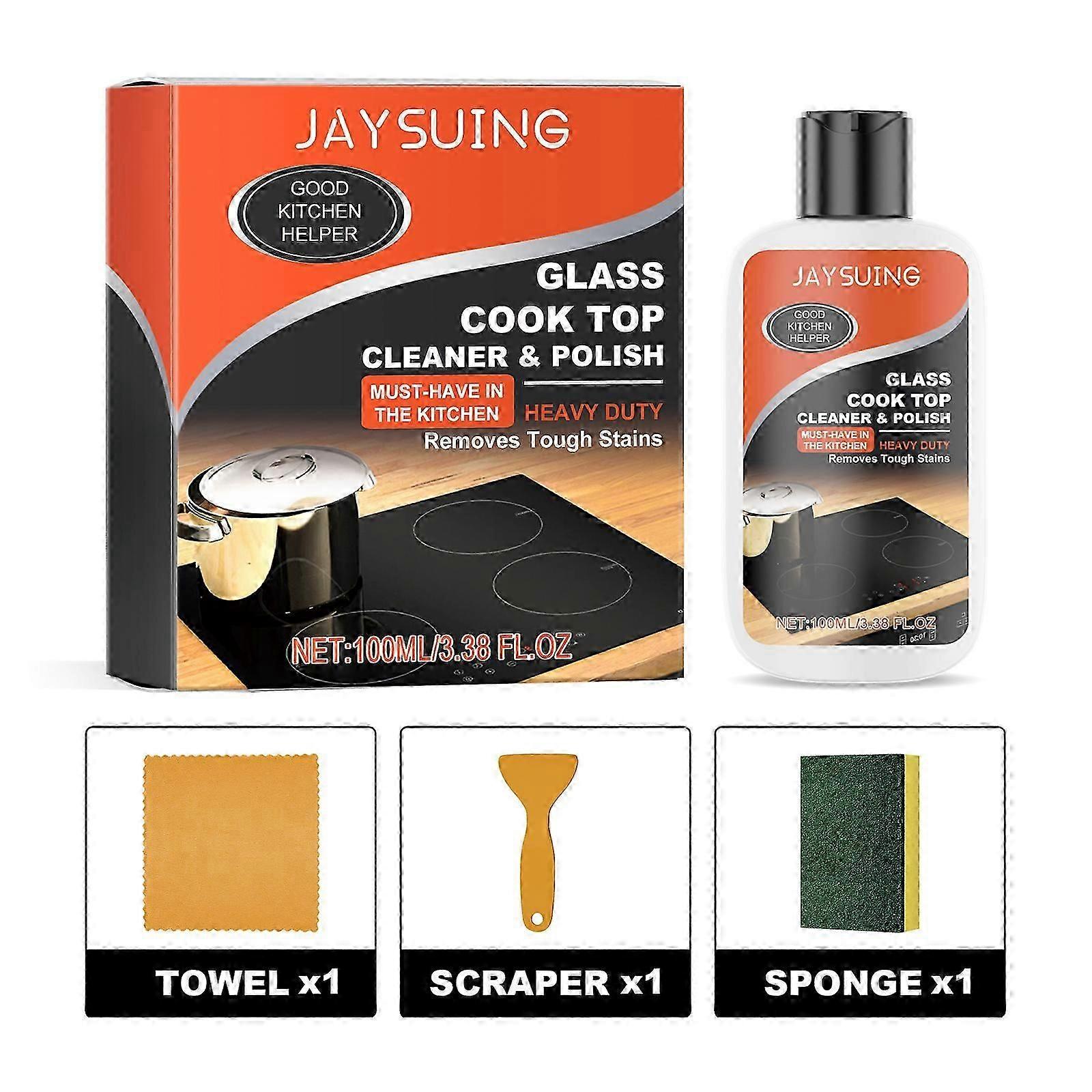 Our stove cleaning kit contains disodium EDTA, sodium bicarbonate, and selenolpolyether-7. It can easily remove the oil and stubborn dirt left and accumulated by daily cooking. Provides excellent cleaning results without scratching or damaging the stove surface and leaving no residue. The way to use it is simple: pour the right amount of detergent onto the stove surface and use a scraper to remove the burn marks on the stove surface. Wipe the surface with a sponge to remove the most stubborn oil and residue. Finally, wipe the polished surface repeatedly with a towel until the stove is bright. And can be applied to a variety of material surfaces, whether the stove is glass, ceramic or induction cooker, can meet the cleaning needs, is the perfect choice for kitchen cleaning.