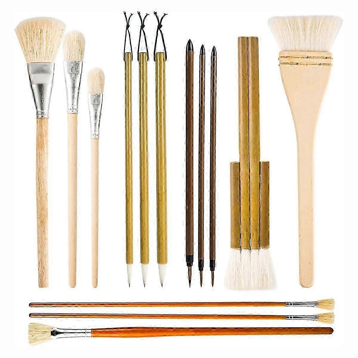 2026 new 14Pcs Pottery Glaze Brushes, Wood Pottery Brushes Long Handle for Watercolor Pottery Oil Painting S