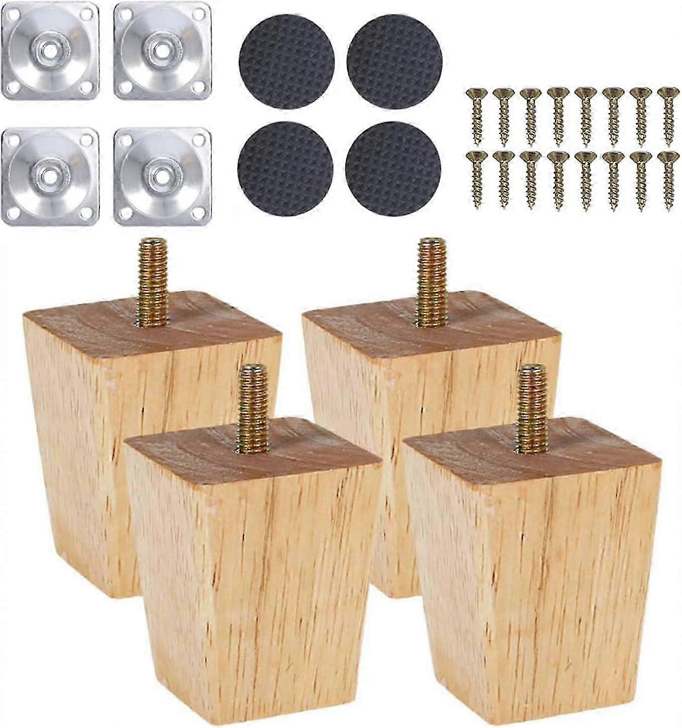 Wooden Furniture Legs, 4 Pieces Conical Wooden Sofa Legs, Replacement Sofa Feet, Wooden Sofa Legs for Sofa TV Bed Dining Walkbee A-F