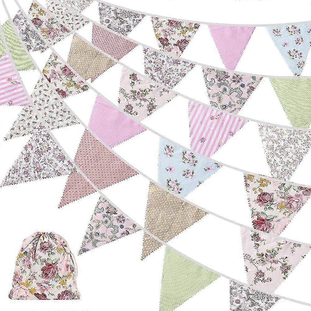 40Ft Fabric Bunting, 42Pcs Outdoor Bunting Banner,Floral Vintage Cotton Triple-cornered Flag for Ga Walkbee A-F