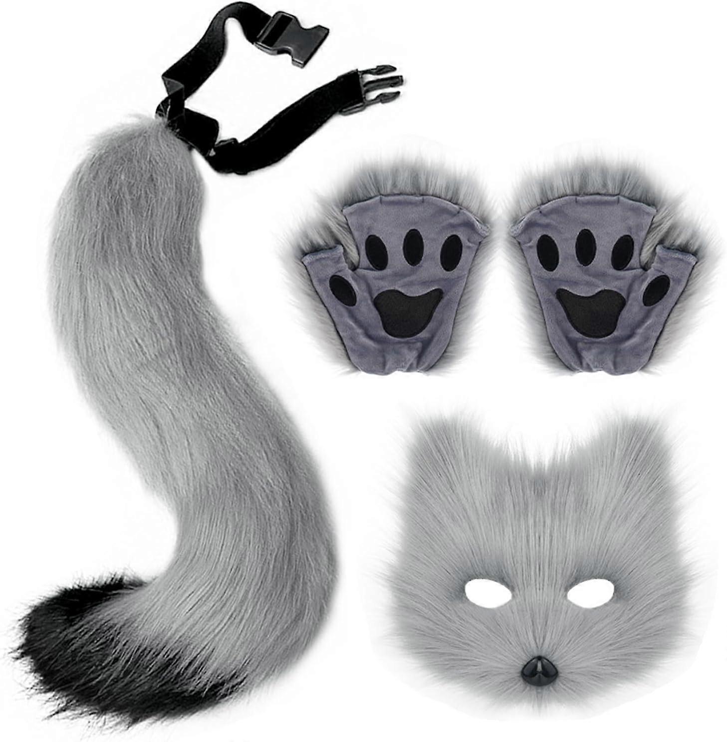 Cat Therian Mask and Tail Set, Animal Mask, Furry Therian Mask, Wolf Mask, White Cat Mask, Half Mask for Masquerade, Cat Mask, Therian Wolf A Black
