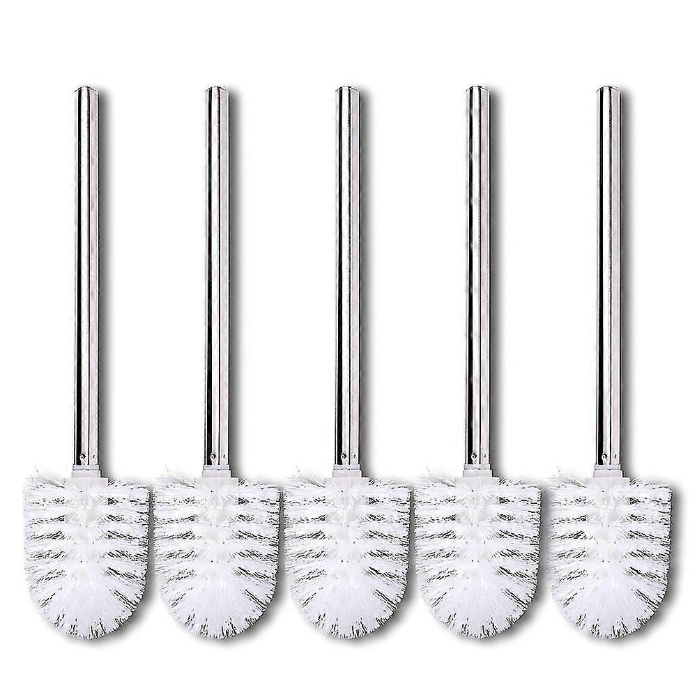 New Replacement Brushes Pack Of 5 Toilet Brushes White Brush Head Stainless Steel Handle Polished Toilet Brush Brushes