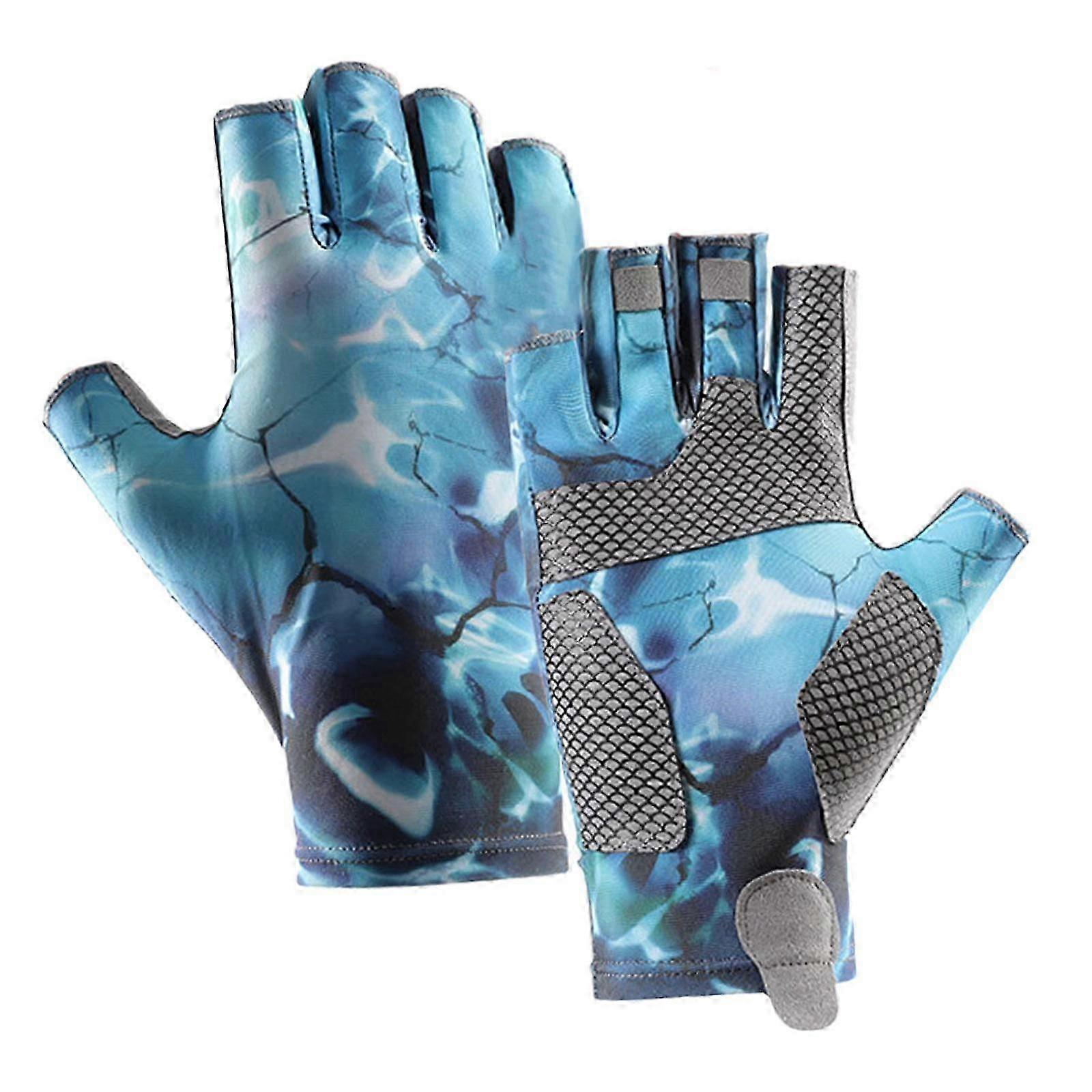 2026 NEW Fingerless Fishing Gloves Non Slip for Men Women for Driving Cycling Camping L Blue