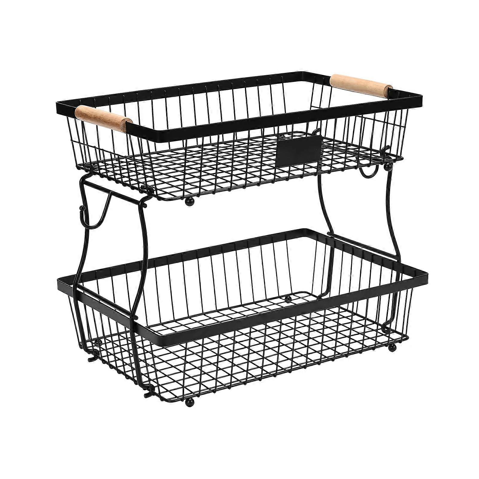 - Multifunctional Storage Solution: This versatile fruit basket is ideal for organizing and displaying fresh fruits, vegetables, toiletries, snacks, and ingredients in your kitchen, living room, or during events. The two-tier design maximizes space while keeping your countertop neat and visually appealing. - Optimal Size: With a total height of 11.41 inches, the top basket measures 13.58 x 8.66 x 3.14 inches, while the bottom basket is 13.77 x 9.25 x 3.54 inches. The tiered structure includes two support shims, ensuring stability. Assembly is effortless, as the basket requires no screws, making it a perfect gift for friends or family. - Stylish and Functional Design: The rectangular shape of the fruit holder not only provides ample storage but also serves as an attractive decorative piece. Use it to enhance your home decor while efficiently organizing your items. - Detachable Baskets: The design allows you to separate the two baskets for individual use, offering flexibility in organization. Place fruits in one basket and bread in another without worrying about stability, as the circular feet ensure a balanced, slip-resistant base on any countertop. - Practical Use Cases: Use this storage rack in your kitchen to keep fruits and vegetables easily accessible. Place it in the living room for snacks during gatherings or as a decorative centerpiece. Ideal for events, it showcases items elegantly while helping you maintain order. Constructed from food-grade metal, this durable storage solution combines functionality with a modern aesthetic, making it a must-have for any home.